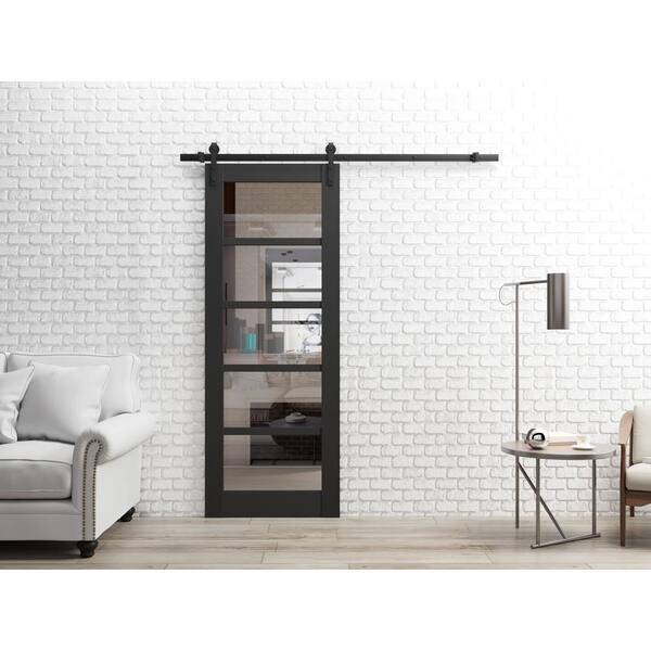 36 in. x 84 in. 1 Panel Clear Glass Black Matte Solid MDF Sliding Barn Door with Hardware Kit