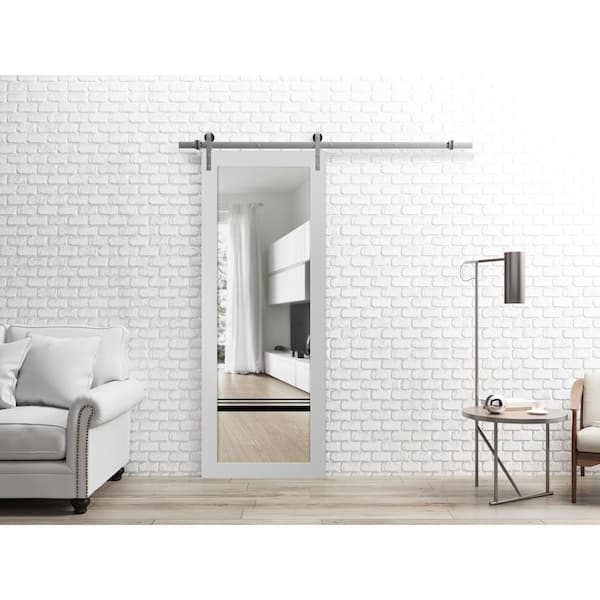 36 in. x 84 in. 1 Panel Clear Glass White Solid Wood Sliding Barn Door with Hardware Kit