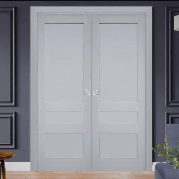 36 in. x 84 in. 2 Panel Matte Grey Finished Solid Wood Sliding Door with Hardware
