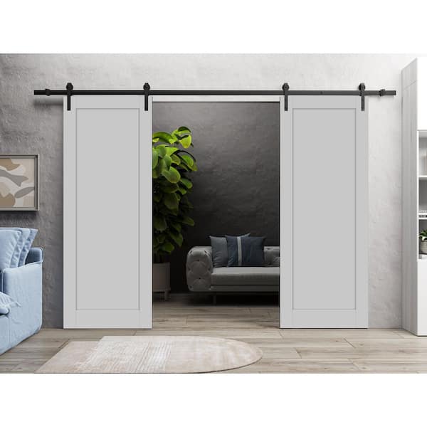 36 in. x 84 in. 2 Panel Matte Grey Solid MDF Sliding Barn Door with Hardware Kit