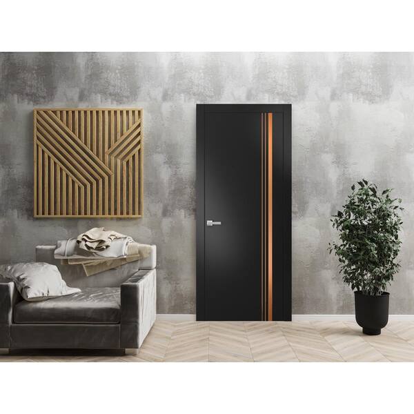 36 in. x 96 in. 1 Panel Black Matte Finished Solid Wood with Honeycomb Sliding Door with Hardware