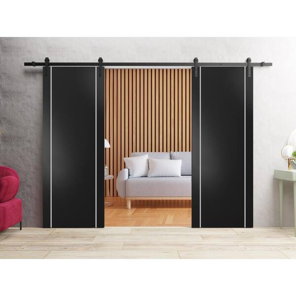 36 in. x 96 in. 2 Panel Black Matte Solid Wood with Honeycomb Sliding Barn Door with Hardware Kit