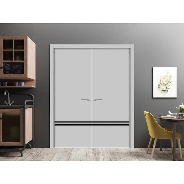 36 in. x 96 in. 2 Panel Matte Grey Finished Solid Wood with Honeycomb Sliding Door with Hardware