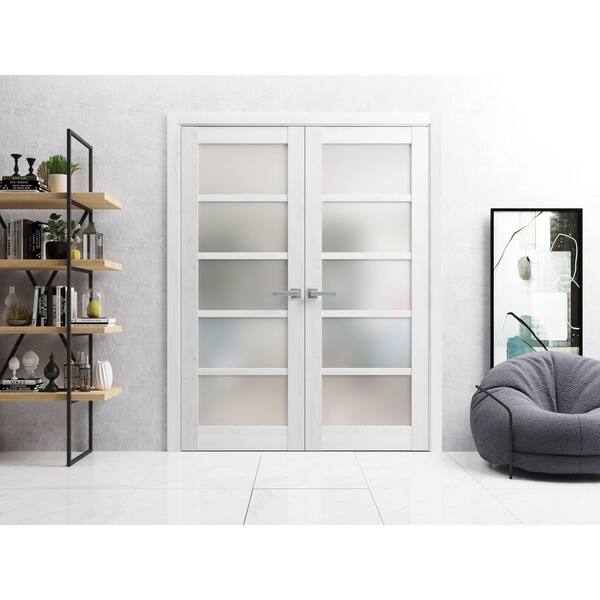 36 in. x 96 in. 2 Panel Nordic White Finished Solid MDF Sliding Door with Hardware
