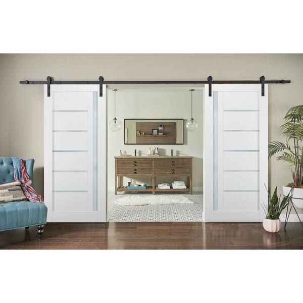 36 in. x 96 in. Lite Frosted Glass White Finished Pine MDF Sliding Barn Door with Hardware Kit