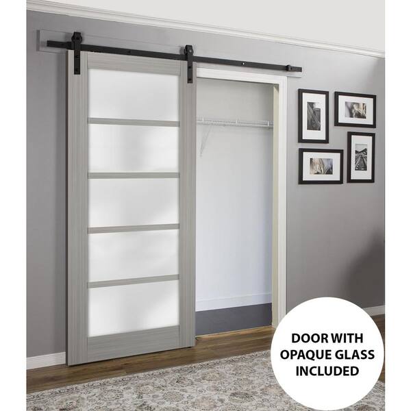 36 in. x 96 in. Single Panel Gray Solid MDF Sliding Door with Double Barn Hardware Kit