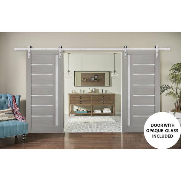36 in. x 96 in. Single Panel Gray Solid MDF Sliding Door with Double Barn Stainless Kit