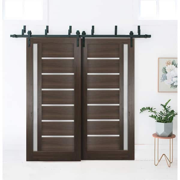 36 in. x 96 in. Solid MDF Frosted Glass Chocolate Ash Interior Door Slab