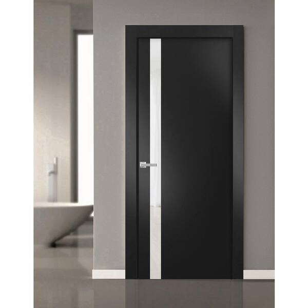 40 24 in. x 84 in. Right-Hand/Inswing Solid Frosted Glass Black Matte Single Prehung Interior Door with Hardware