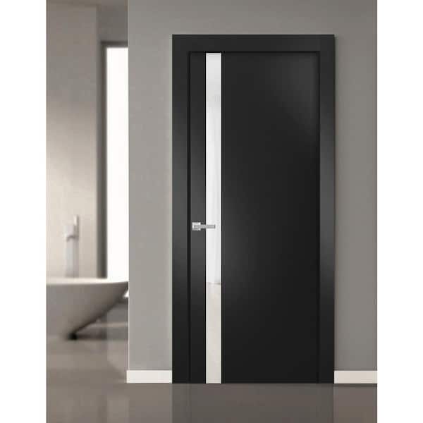 40 42 in. x 80 in. Right-Hand/Inswing Solid Frosted Glass Black Matte Single Prehung Interior Door with Hardware