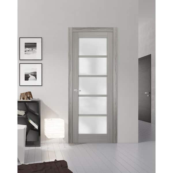 4002 28 in. x 80 in. Right-Hand/Inswing Solid Frosted Glass Gray Ash Single Prehung Interior Door with Hardware