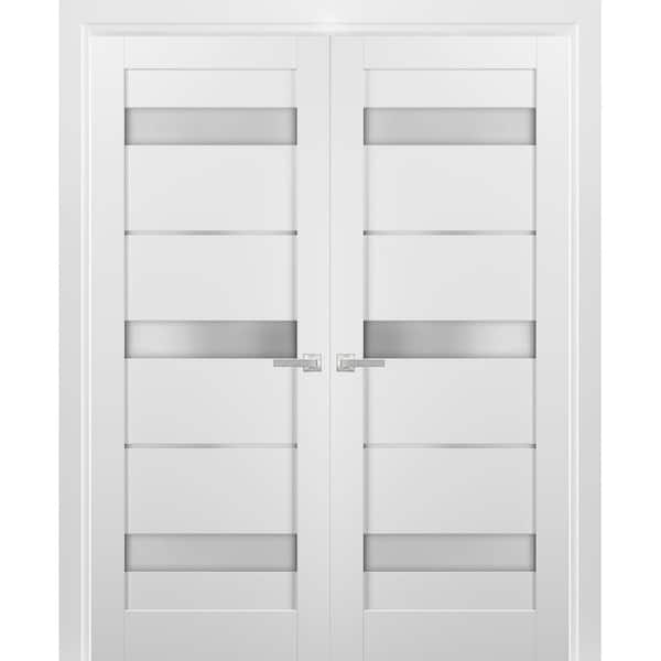 4055 36 in. x 84 in. Single Panel White Finished Pine Wood Sliding Door with Hardware