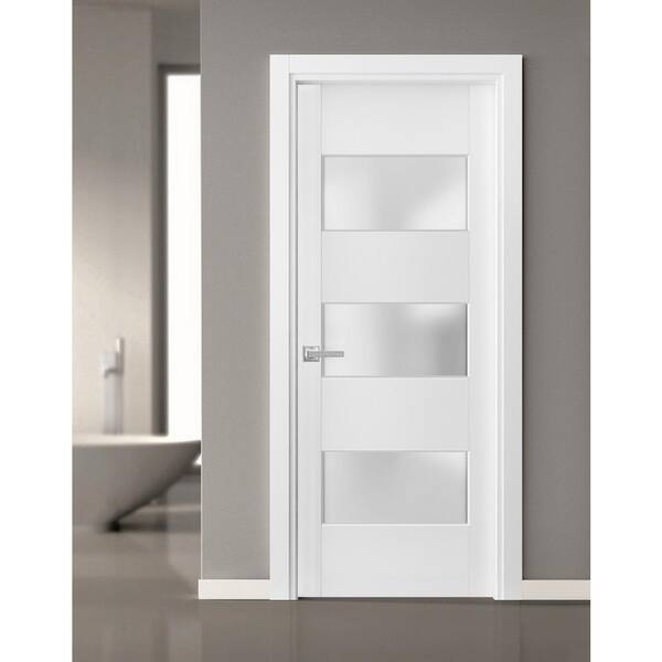 4070 28 in. x 80 in. Single Panel No Bore Frosted Glass White Finished Pine Wood Interior Door Slab