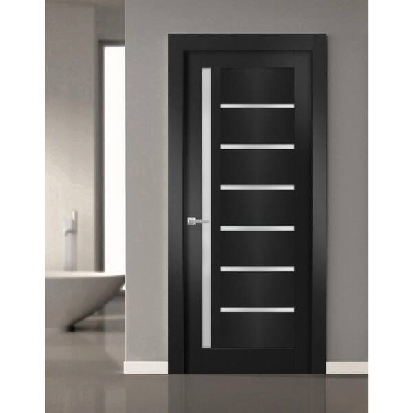 4088 18 in. x 84 in. Right-Hand/Inswing Solid Frosted Glass Black Matte Single Prehung Interior Door with Hardware