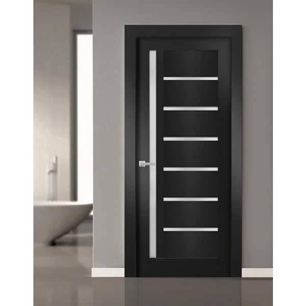 4088 36 in. x 84 in. Left-Hand/Inswing Solid Frosted Glass Black Matte Single Prehung Interior Door with Hardware