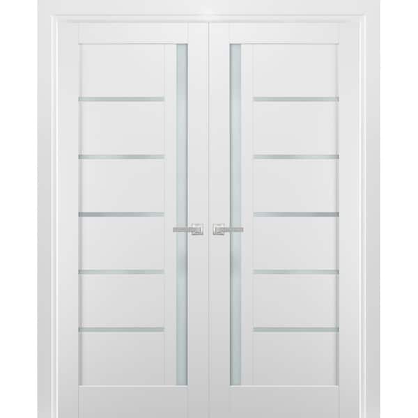 4088 36 in. x 84 in. Single Panel White Finished Pine Wood Sliding Door with Hardware