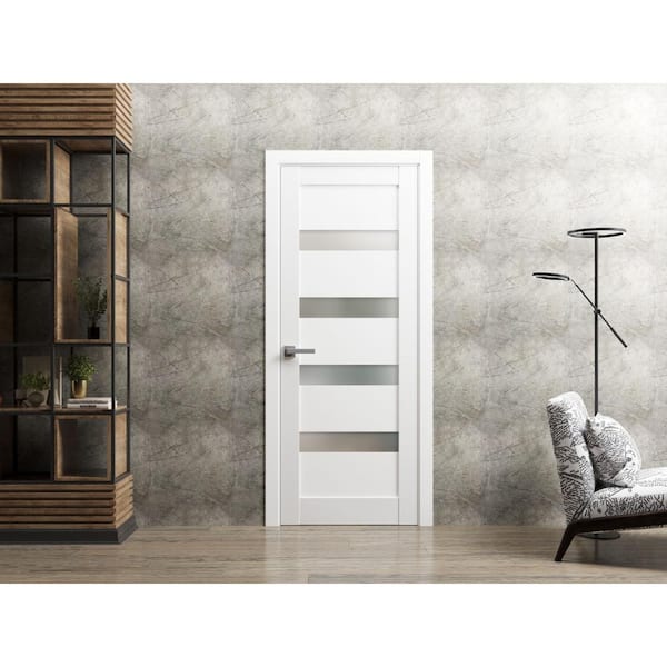 4113 32 in. x 80 in. Left-Hand/Inswing Solid Frosted Glass White Single Prehung Interior Door with Hardware