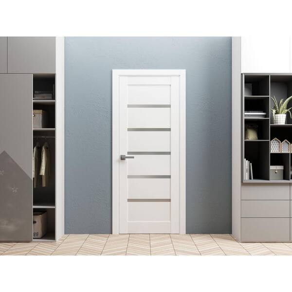 4117 42 in. x 80 in. Right-Hand/Inswing Solid Frosted Glass White Single Prehung Interior Door with Hardware