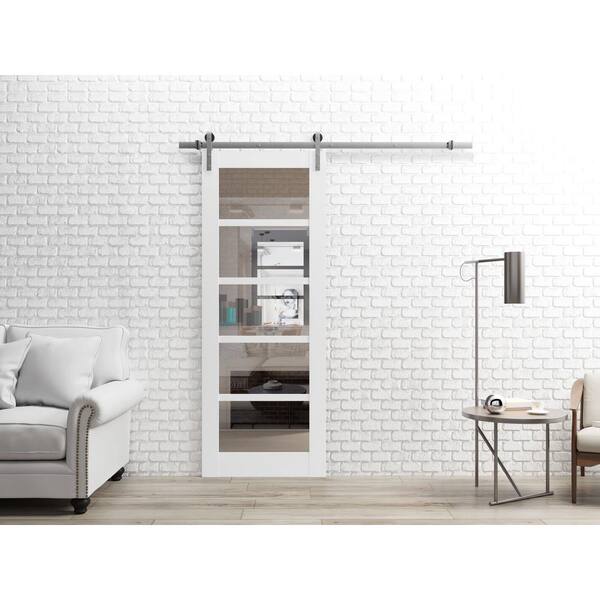 42 in. x 80 in. 1 Panel Clear Glass White Wood Sliding Barn Door with Hardware Kit
