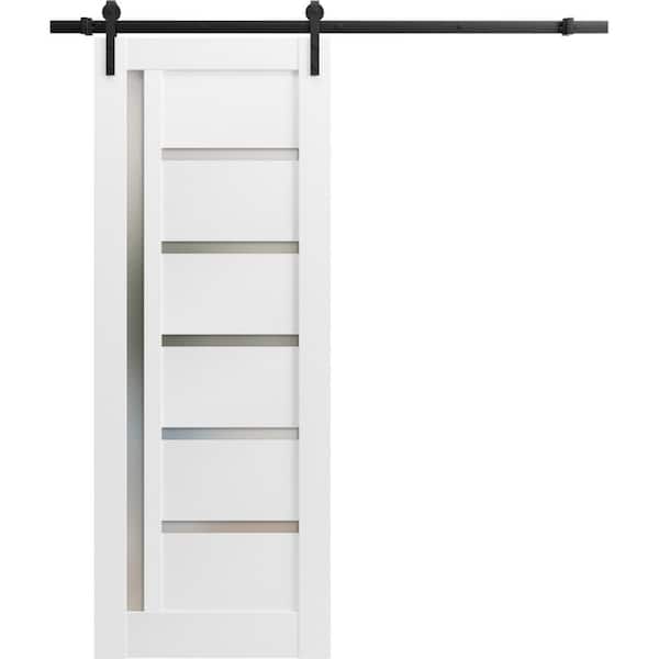 42 in. x 80 in. 1 Panel Frosted Glass White Wood Sliding Barn Door with Hardware Kit