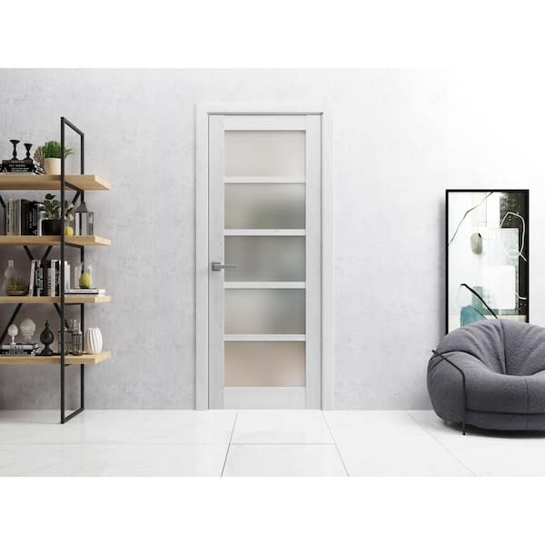 42 in. x 80 in. 1 Panel Nordic White Finished Solid MDF Sliding Door with Hardware