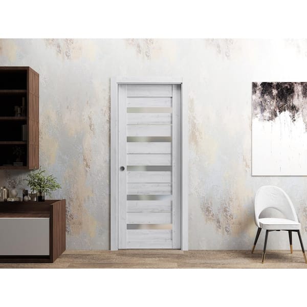 42 in. x 80 in. 1 Panel Nordic White Finished Solid MDF Sliding Door with Hardware