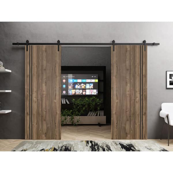 42 in. x 80 in. 2-Panel Walnut Solid Wood with Honeycomb Sliding Barn Door with Hardware Kit