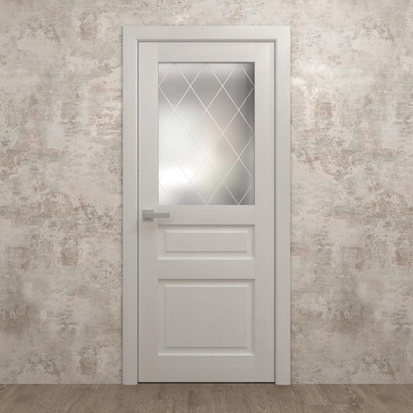 42 in. x 80 in. Frosted Glass Painted White Oak Solid Wood Interior Door Slab With Hardware