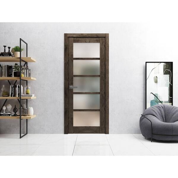 42 in. x 80 in. Right-Hand/Inswing Solid Frosted Glass Cognac Oak Wood Single Prehung Interior Door with Hardware