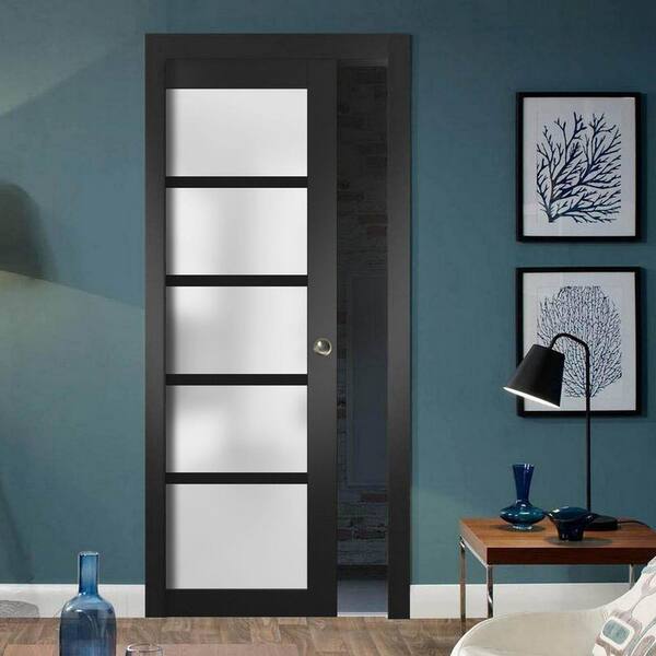 42 in. x 84 in. 1 Panel Black Matte Finished MDF Sliding Door with Hardware