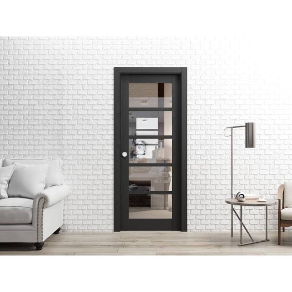 42 in. x 84 in. 1 Panel Black Matte Finished Solid MDF Sliding Door with Hardware