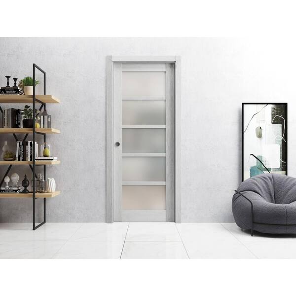 42 in. x 84 in. 1-Panel Light Grey Oak Color Finished Solid MDF Sliding Door with Hardware