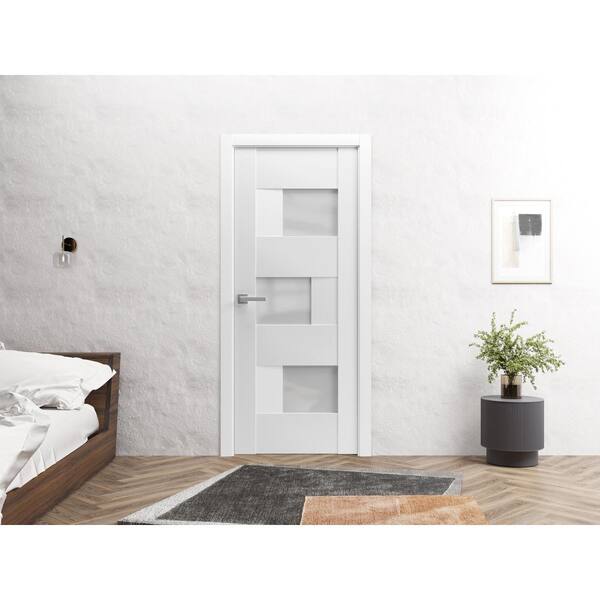 42 in. x 84 in. 1 Panel White Finished Solid MDF Sliding Door with Hardware