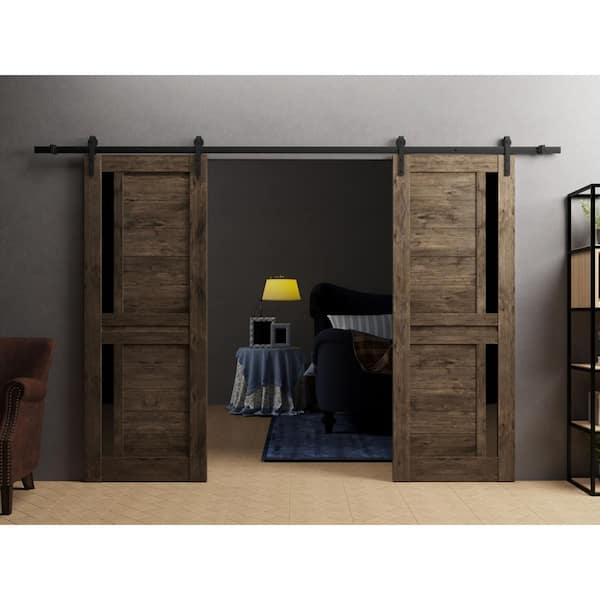 • Includes 2 door slabs, steel track rail, hangers with wheels
