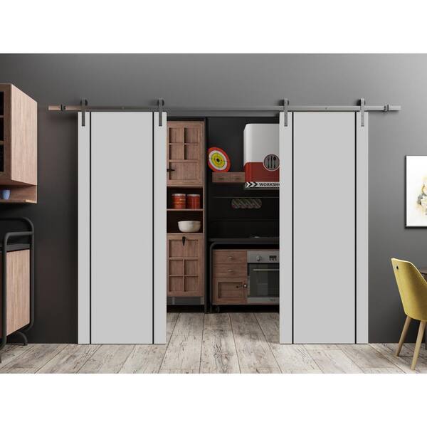 42 in. x 84 in. 2 Panel Matte Grey Solid Wood with Honeycomb Sliding Barn Door with Hardware Kit