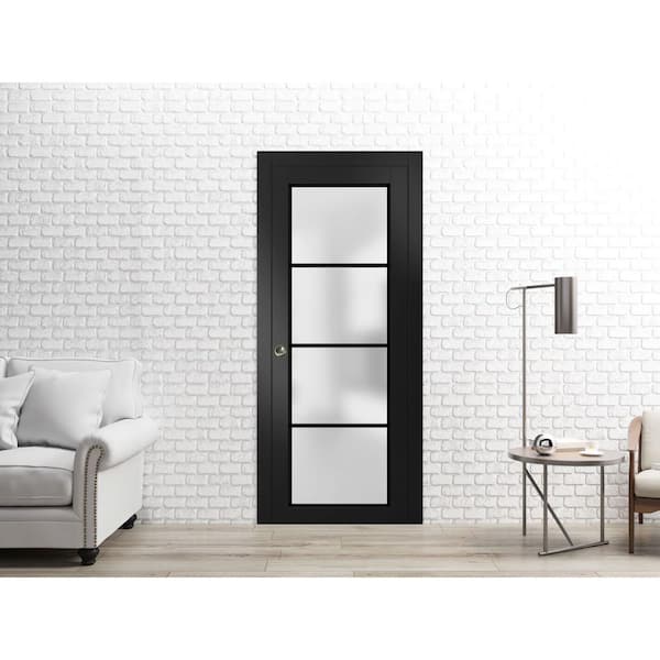42 in. x 96 in. 1 Panel Black Matte Finished Solid Wood Sliding Door with Hardware