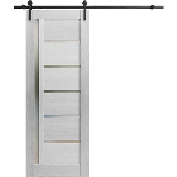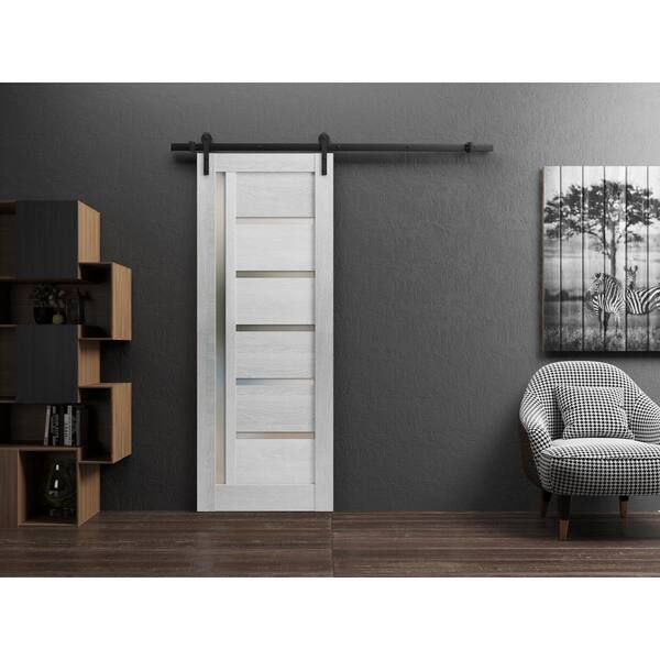 42 in. x 96 in. 1 Panel Frosted Glass Light Grey Oak Wood Sliding Barn Door with Hardware Kit