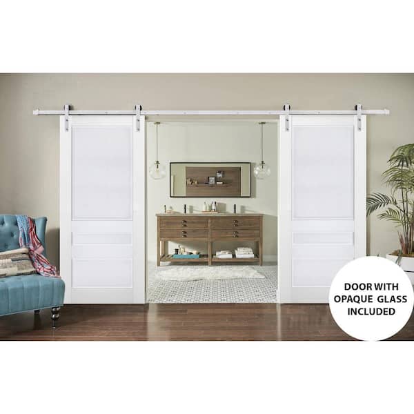42 in. x 96 in. 2 Panel White Solid Wood Sliding Barn Door with Hardware Kit