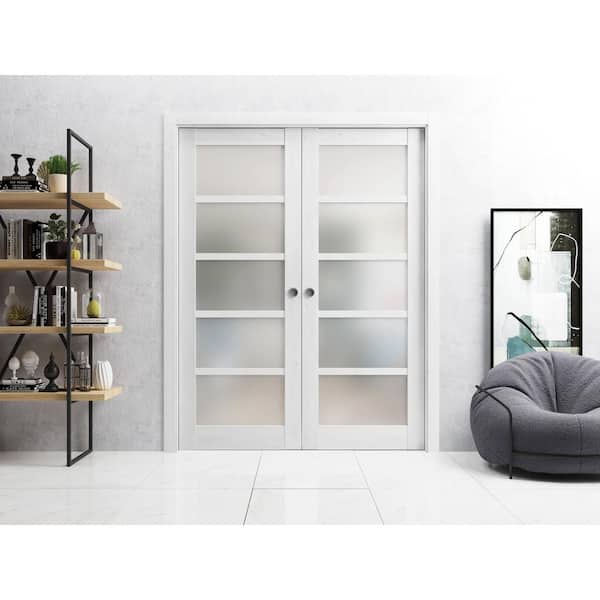 48 in. x 80 in. 2 Panel Nordic White Finished Solid MDF Sliding Door with Hardware