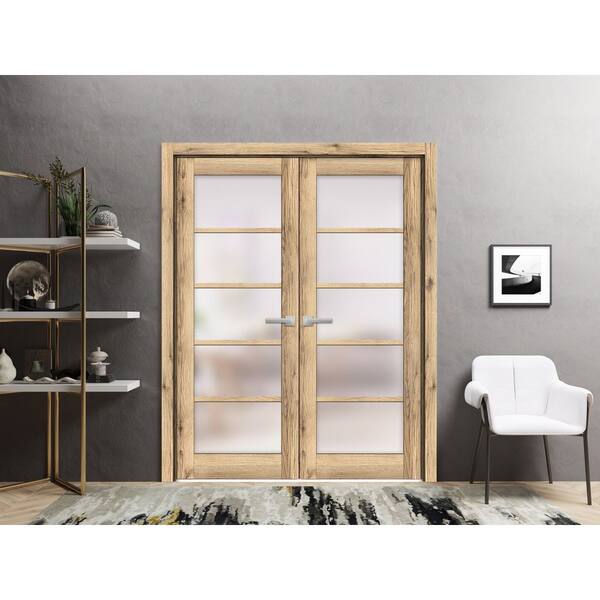 48 in. x 80 in. 2 Panel Oak Finished MDF Sliding Door with Hardware