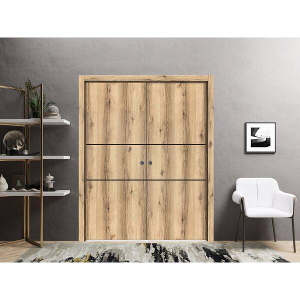 48 in. x 80 in. 2 Panel Oak Finished Solid Wood with Honeycomb Sliding Door with Hardware