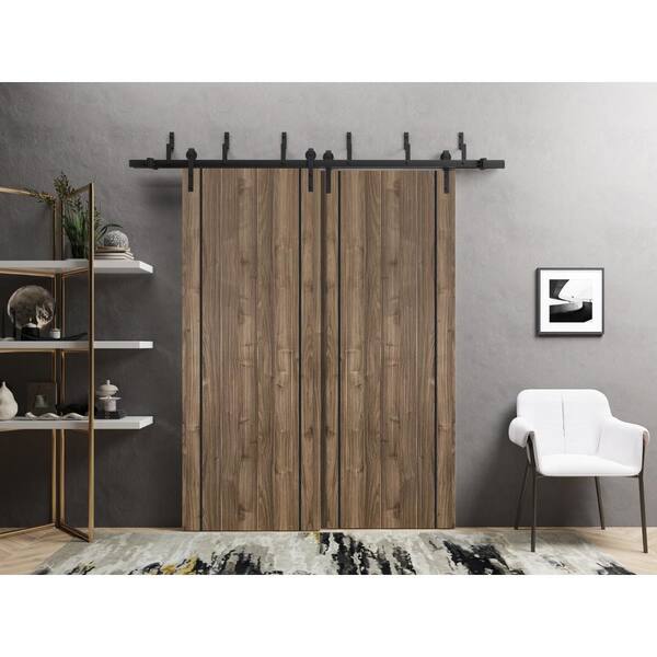 48 in. x 80 in. 2 Panel Walnut Solid Wood with Honeycomb Sliding Barn Door with Hardware Kit