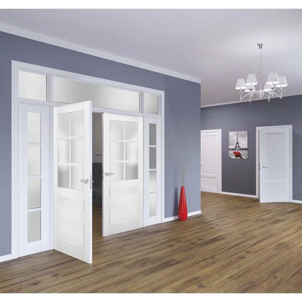 48 in. x 80 in. 2 Panel White Finished Solid Wood Sliding Door with Hardware
