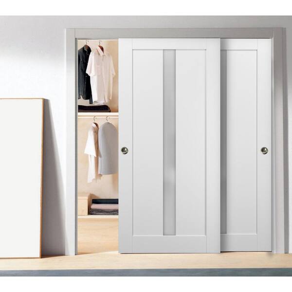 48 in. x 80 in. Single Panel White Finished Solid MDF Sliding Door with Bypass Sliding Hardware