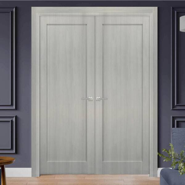 48 in. x 84 in. 2 Panel Gray Ash Finished MDF Sliding Door with Hardware