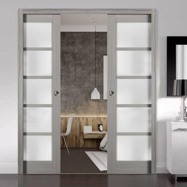 48 in. x 84 in. 2 Panel Gray Ash Finished Solid MDF Sliding Door with Hardware