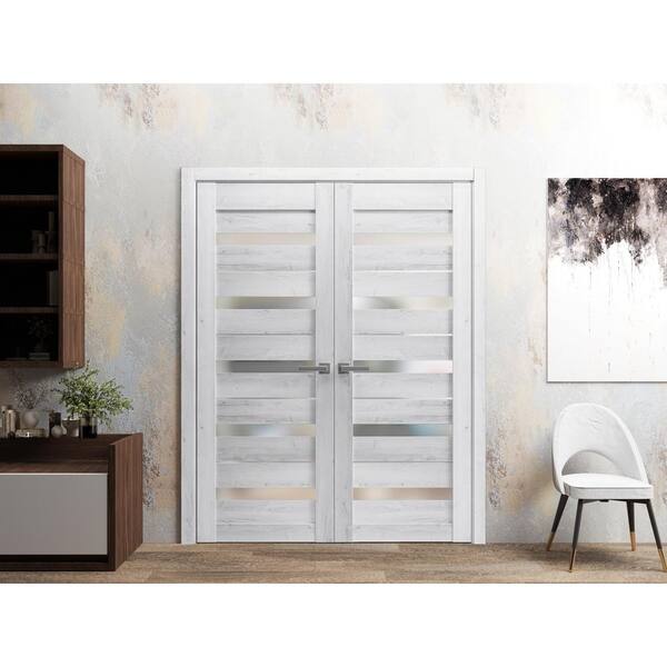 48 in. x 84 in. 2 Panel Nordic White Finished Solid MDF Sliding Door with Hardware