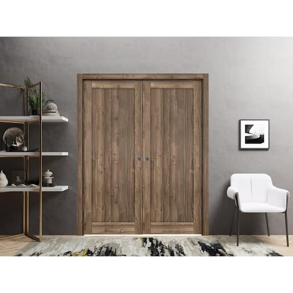 48 in. x 84 in. 2 Panel Walnut Finished MDF Sliding Door with Hardware