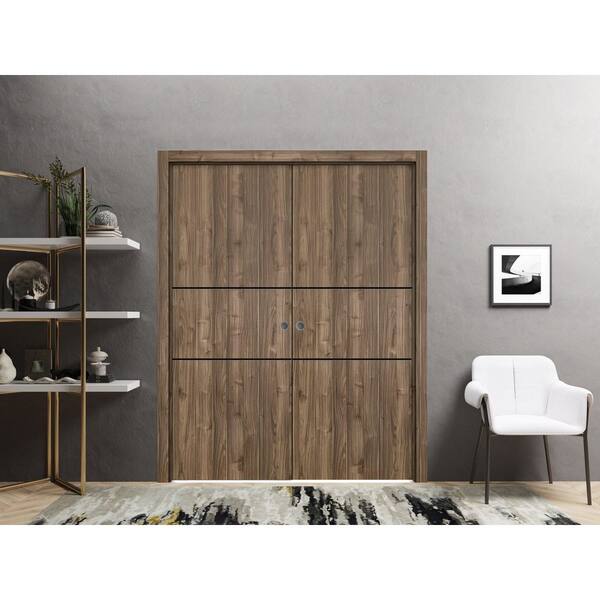 48 in. x 84 in. 2 Panel Walnut Finished Solid Wood with Honeycomb Sliding Door with Hardware