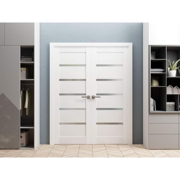48 in. x 84 in. 2 Panel White Finished Solid MDF Sliding Door with Hardware